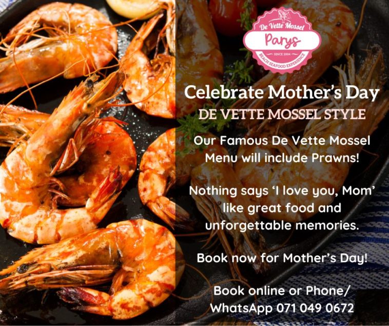 On Sunday, 11 May, De Vette Mossel Parys is throwing a seafood celebration with a twist – swapping out their traditional seafood potjie for pan-fried prawns, served hot and dripping with coastal charm. It’s everything you love about De Vette Mossel’s famous beach-style buffet… just with extra prawns and extra love.