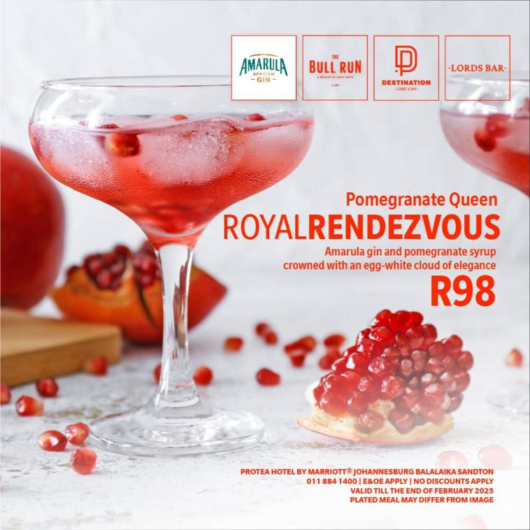 - Start with the Pomegranate Queen, a regal mix of Amarula gin and pomegranate syrup, topped with a delicate egg-white cloud. This cocktail, priced at R98, combines rich flavors with a smooth finish, perfect for a royal rendezvous.