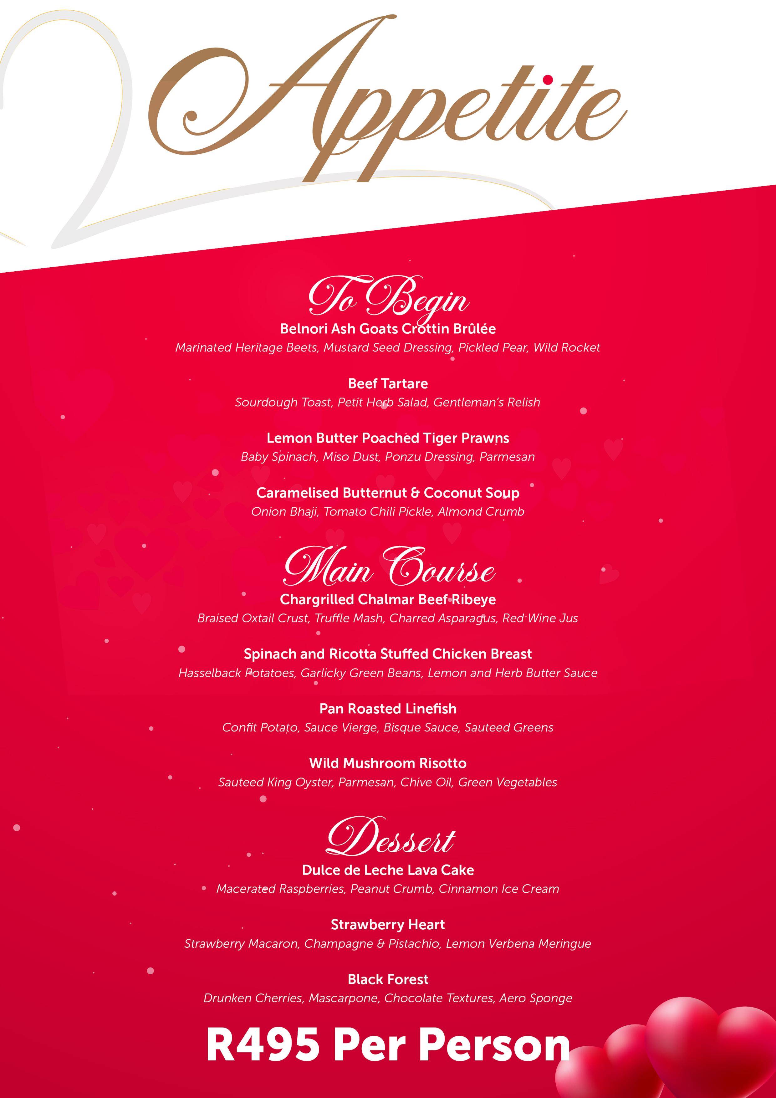 Priced at R495 per person, this exclusive Valentine’s Day menu at Appetite promises to deliver an unforgettable dining experience that embodies love and passion. Don’t miss out on an evening filled with exquisite cuisine and enchanting ambiance—book your table now and experience the magic of love on a plate at Time Square’s premier dining destination.
