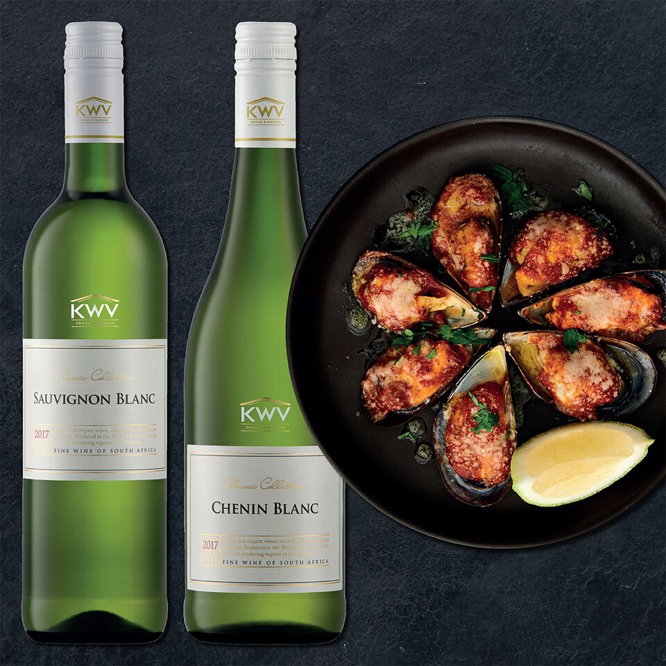 Get a complimentary mussel bake when you purchase a bottle of KWV Wine : Sauvignon Blanc for R126, Chenin Blanc for R126, Cabernet Sauvignon for R174 and Roodeberg for R180.