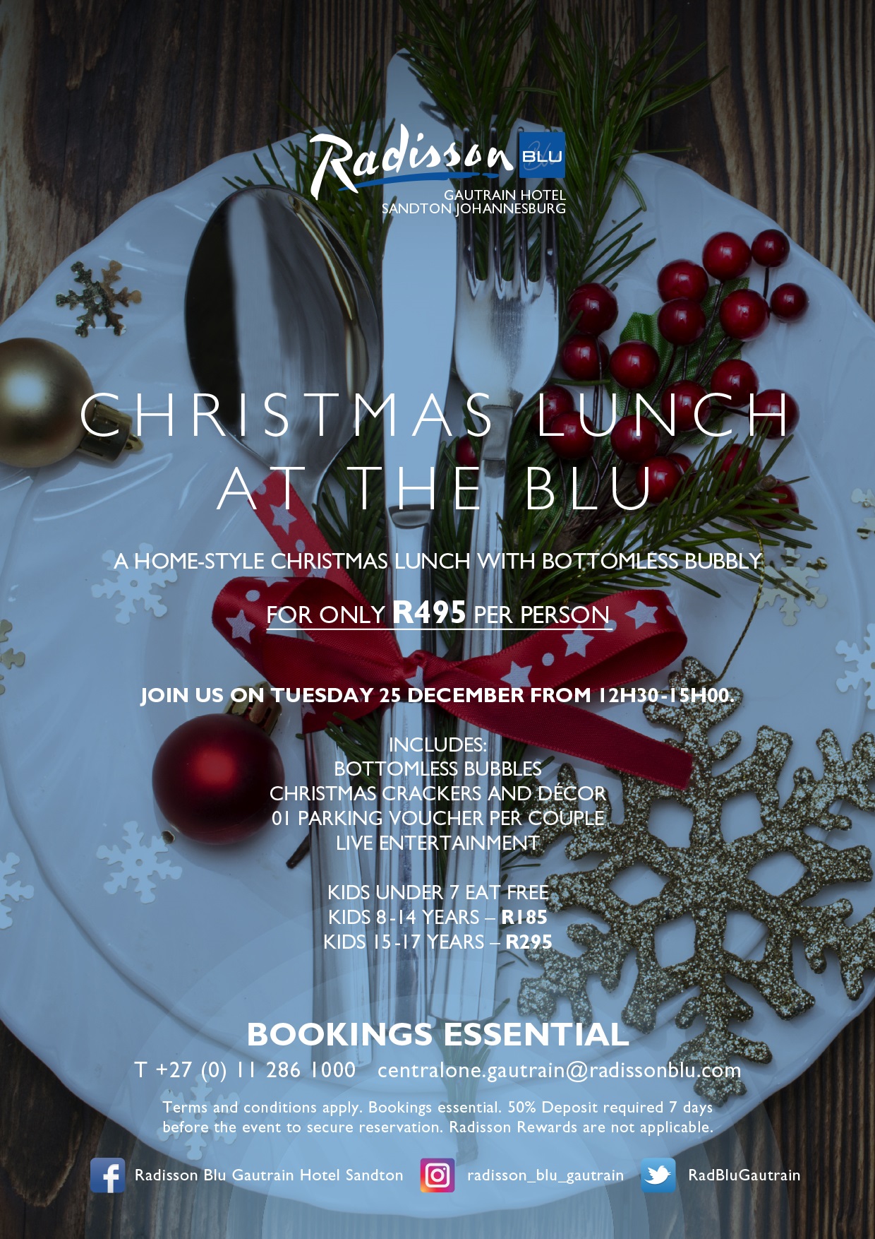Book your Christmas lunch at Radisson Blu Gautrain Hotel!