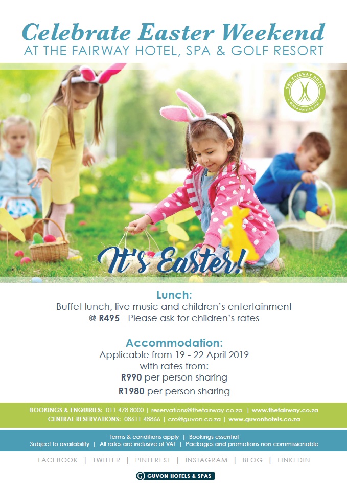 The Fairway Hotel, Spa and Golf Resport located in Randburg will be hosting a fantastic lunch buffet over the Easter weekend that will be a great experience for the entire family.