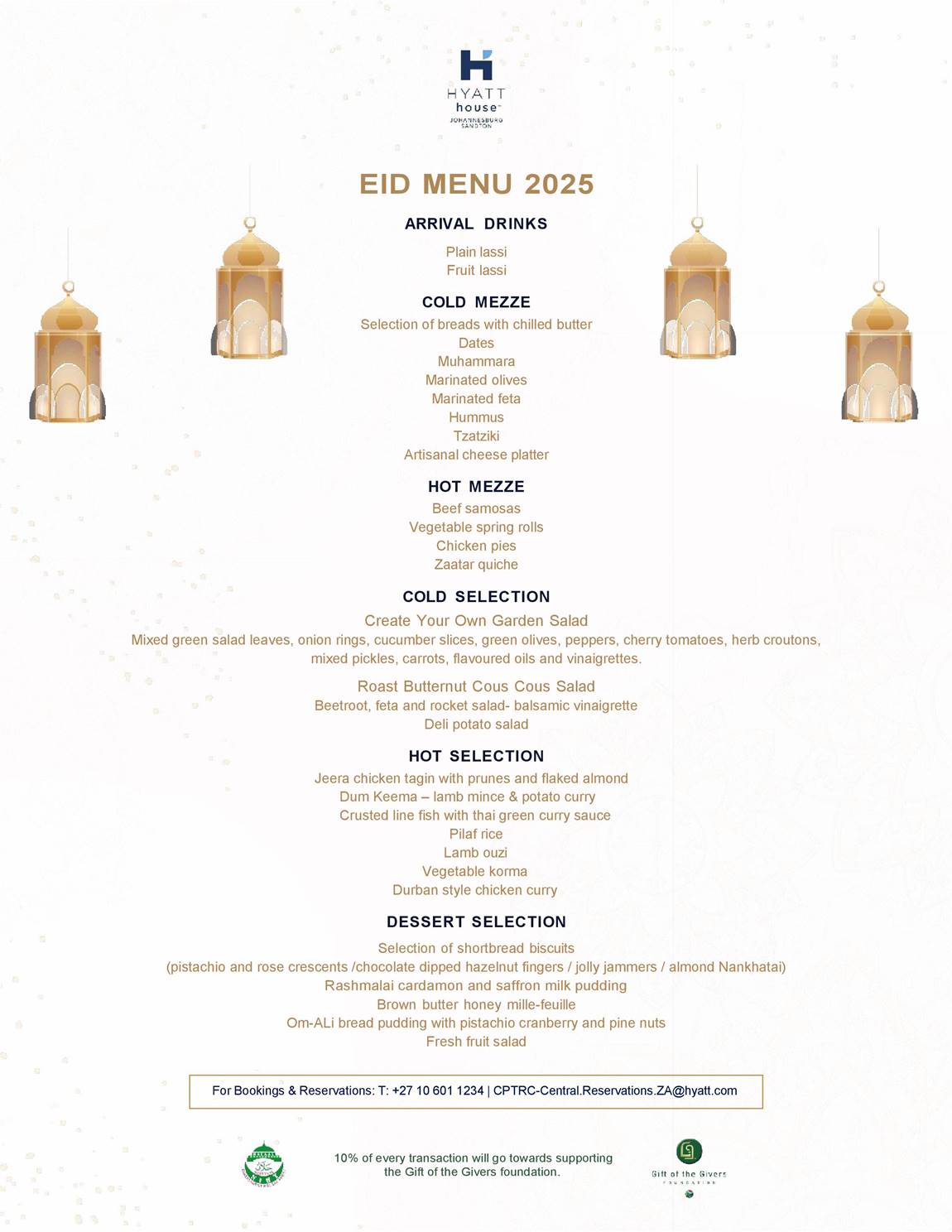 For reservations, contact +27 10 601 1234 or email CPTRC-Central.Reservations.ZA@hyatt.com. Celebrate Eid with elegance and exceptional flavors at Hyatt House Sandton.