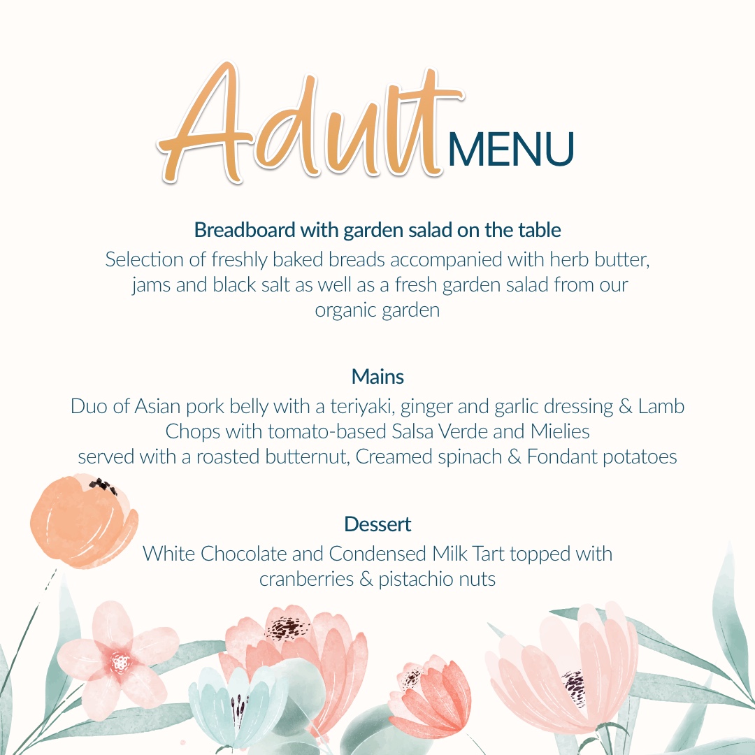 - The menu is priced at R378 per person, offering a delightful selection of dishes crafted to complement the serene garden surroundings. For the little ones, a special menu is available at R154 per child, ensuring everyone can partake in this delightful day out.