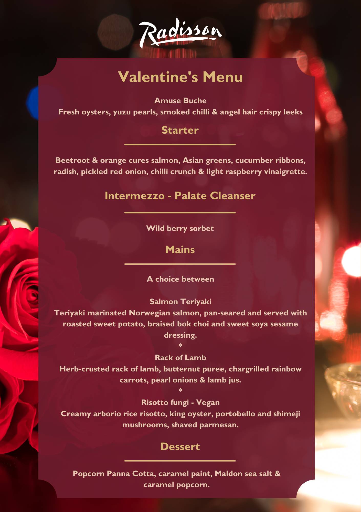 Celebrate Love with a Romantic 3 Course Valentine’s Dinner at Radisson Blu Sandton