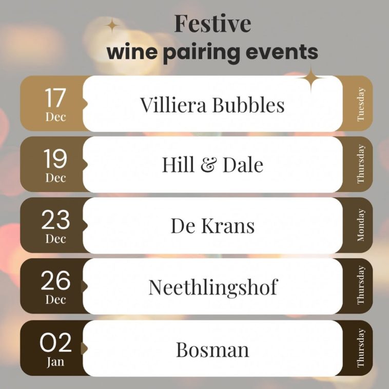 - The series kicks off on 17 December with the sparkling elegance of Villiera Bubbles, setting the tone for a luxurious holiday season.