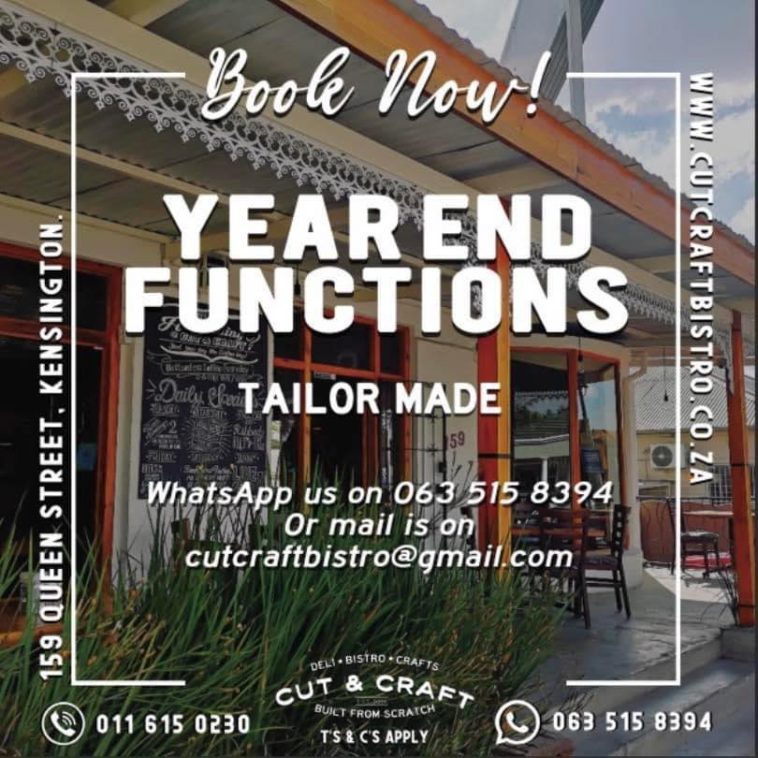 Booking your year-end function is easy. Simply WhatsApp them at 063 515 8394 or email cutcraftbistro@gmail.com.