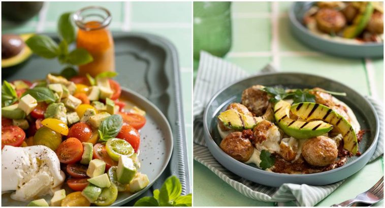 We’re braaiing our potatoes and combining them with creamy avos in our flavour-packed Braaied Baby Potato and Charred Avo Salad (with Harissa Avo Dressing). Tomatoes are being given a whole new lease on life in our Marinated Avocado and Cherry Tomato Salad with Mozzarella.