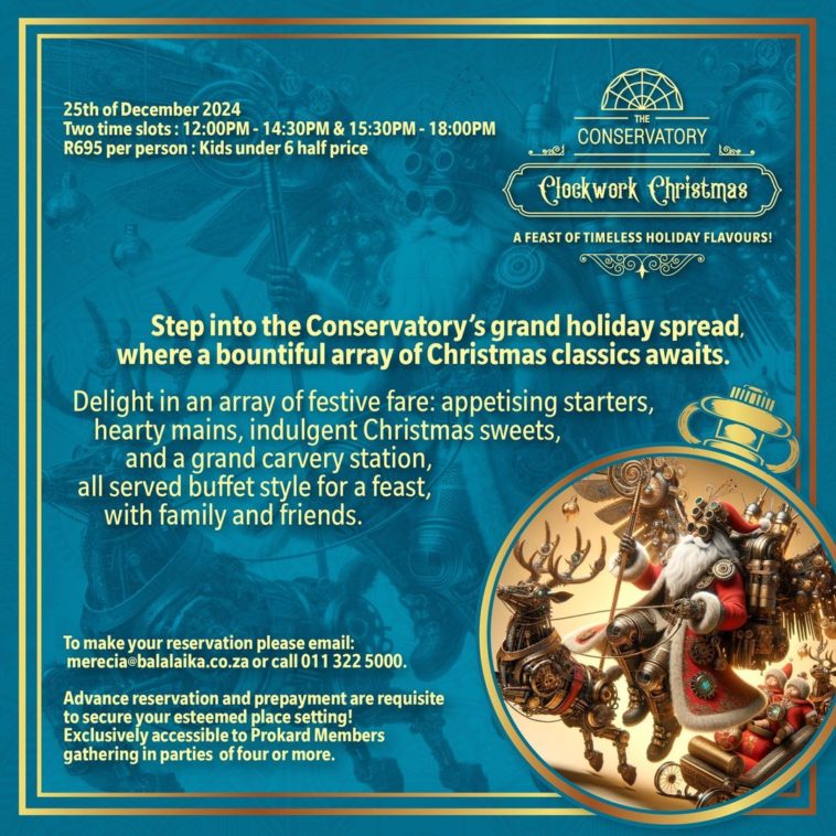 Celebrate Christmas Day in grand style at The Conservatory, located within the The Protea Hotel Balalaika.