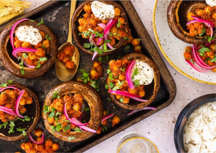 - Mushroom, Pea & Potato Samoosas with a Mint & Yoghurt Dipping Sauce