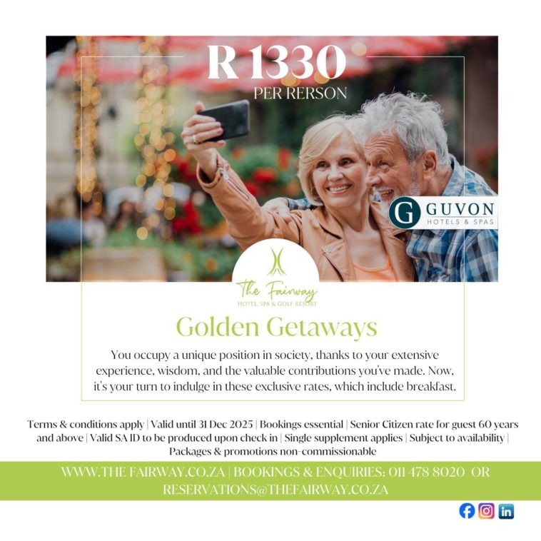 The Fairway Hotel is known for its impeccable service and idyllic setting, making it the ideal destination to relax, rejuvenate, and reconnect with yourself or loved ones. Don’t miss the chance to indulge in this exclusive offer. For bookings and enquiries, visit www.thefairway.co.za or contact reservations@thefairway.co.za. Your golden getaway awaits!