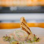 Capturing the innocence of Yohann’s first oyster experience, this appetizer consists of a Namibian oyster in a sphere of gazpacho consommé, lemon pearl and sea weed chips. It is clean and fresh and stares innocently up at you begging you to eat it.