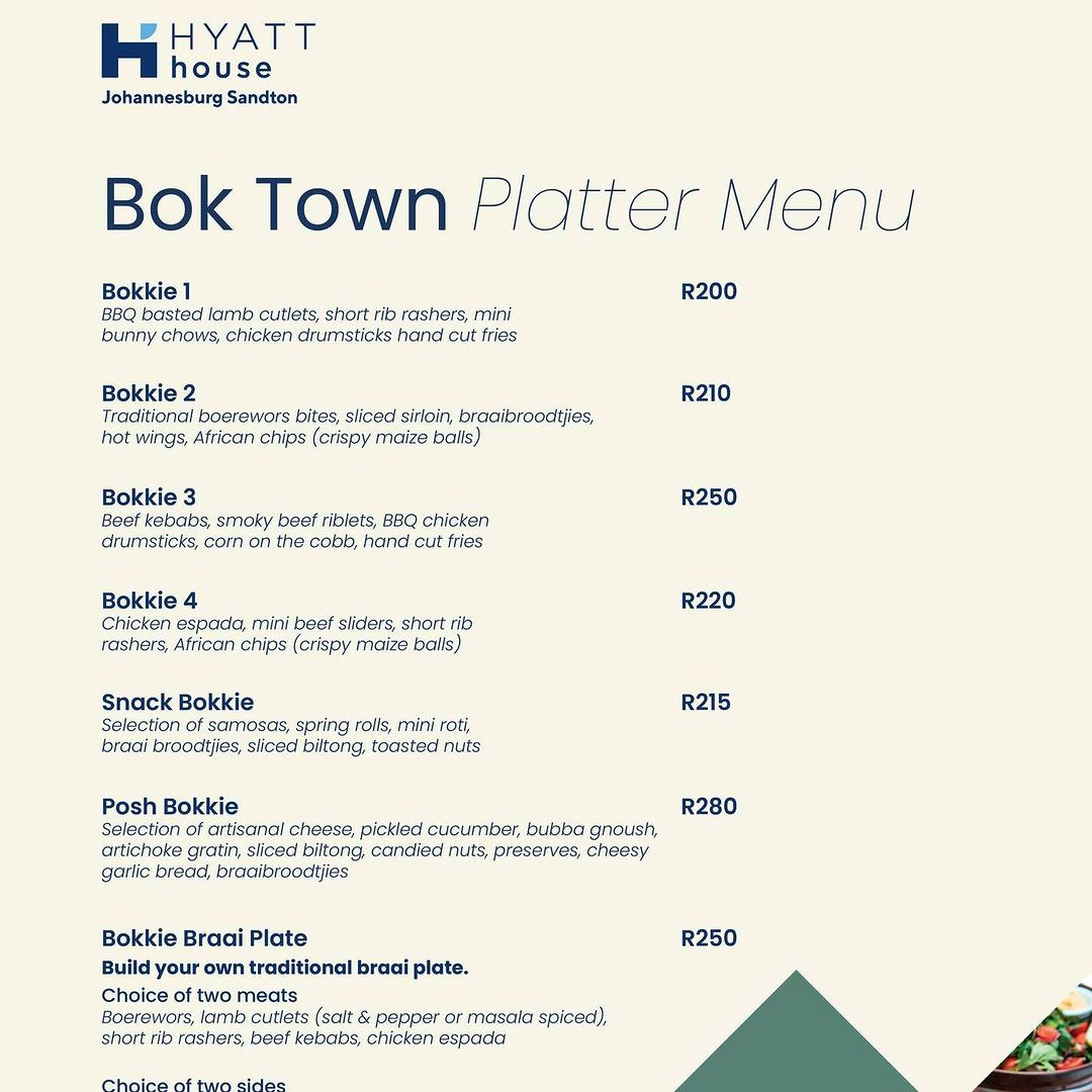 The culinary team has crafted a delectable selection of dishes that are a match made in heaven for this occasion. From savory snacks to mouthwatering mains and refreshing beverages, the Bok Town menu is designed to delight your taste buds while you cheer for your favorite team.