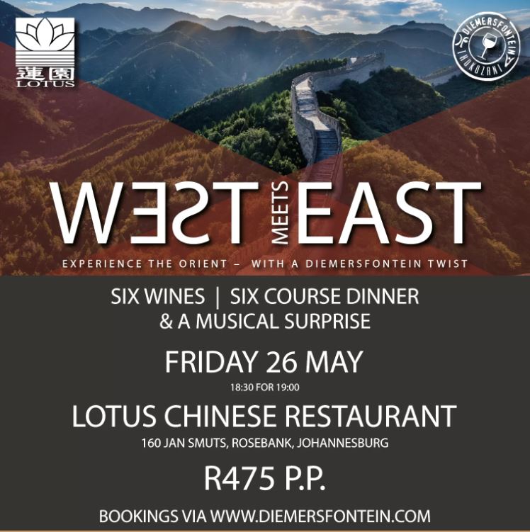 Calling all food and wine enthusiasts! Prepare your taste buds for a remarkable journey as Diemersfontein Wine Farm presents “The Lotus Wine Dinner”, at the elegant Lotus Chinese Restaurant in Rosebank, Johannesburg.