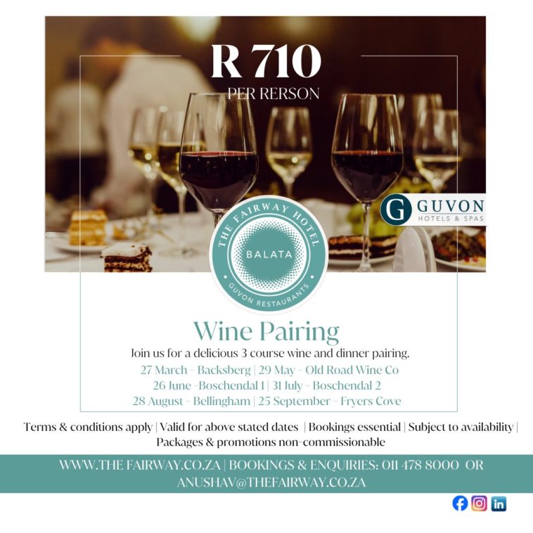- Guests can expect expertly curated menus paired with outstanding wines, enhancing every bite with perfectly balanced flavours. Priced at R710 per person, each evening promises pure indulgence, where wine experts share their knowledge and guests enjoy a night of delicious food, premium wine, and great company.