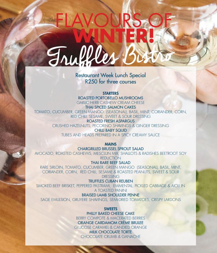 This year, Truffles on the Park will be part of Restaurant Week (18 July – 4 August) offering a lunch menu (2 courses) for only R250 per person. A 3 course dinner menu for R350 is also available.