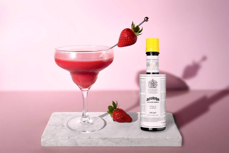 - Toss the rum, lime juice, simple syrup, strawberries, and ANGOSTURA® aromatic bitters into a blender with ice.