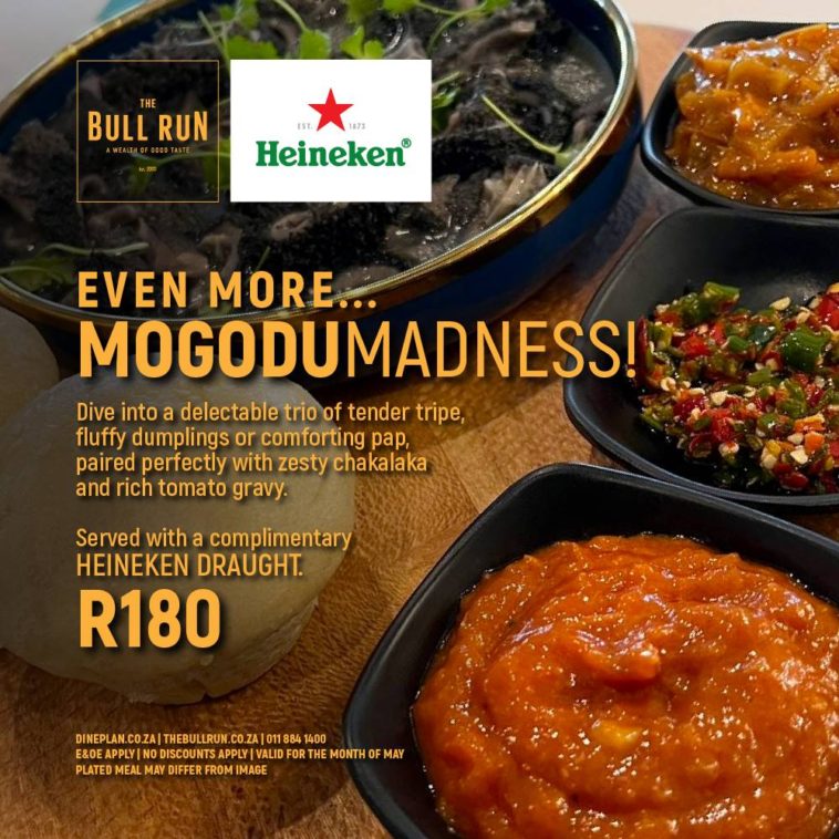 - For just R180, guests can feast on a tantalizing trio of tender tripe, fluffy dumplings, or comforting pap, expertly paired with zesty chakalaka and rich tomato gravy. Join The Bull Run and rediscover the magic of Mogodu Madness – a celebration of heritage, flavor, and community.