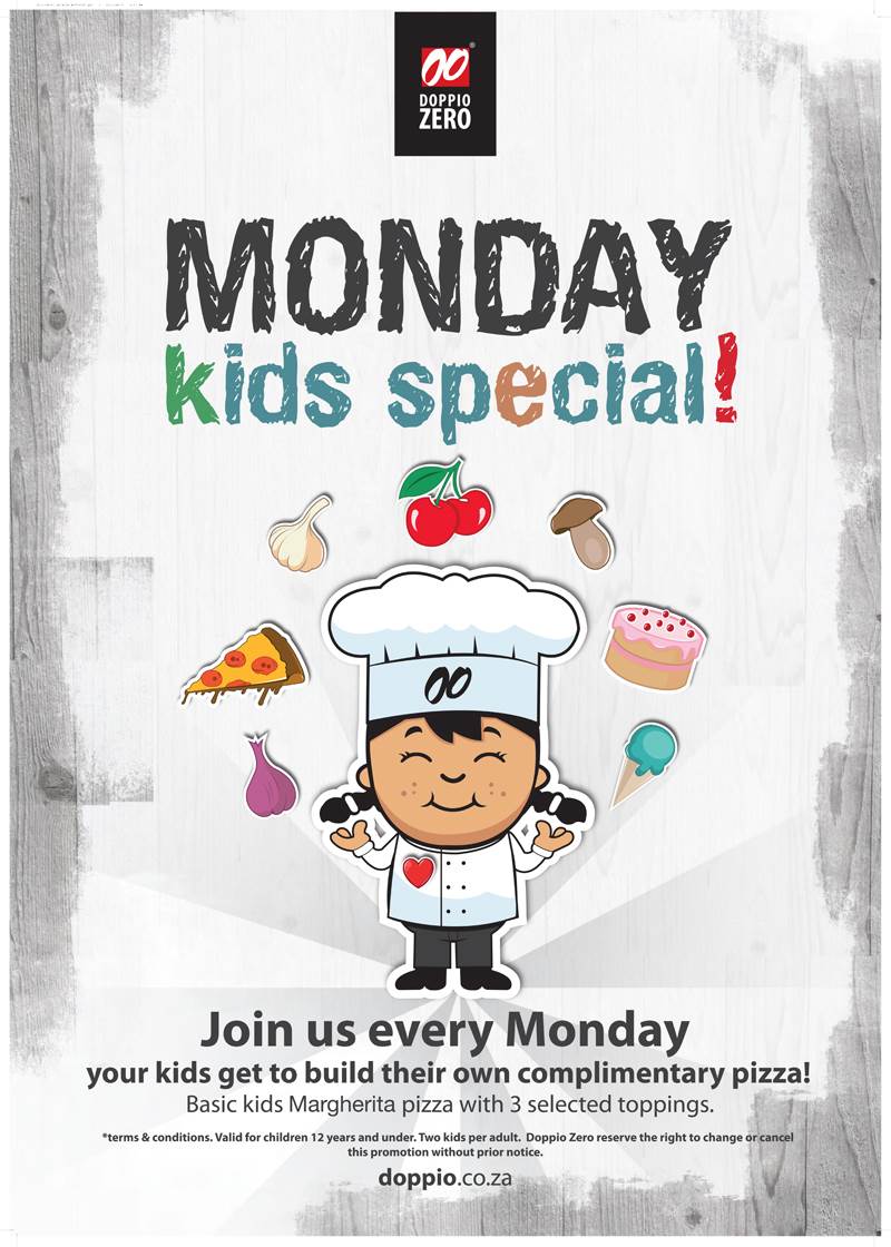 … and here is one more reason to enjoy life with this great special at Doppio Zero every Monday. They get to be a chef and create their own pizza. Start with a basic Margherita pizza where they can choose up to three additional toppings.This is valid for all kids of 12 years.