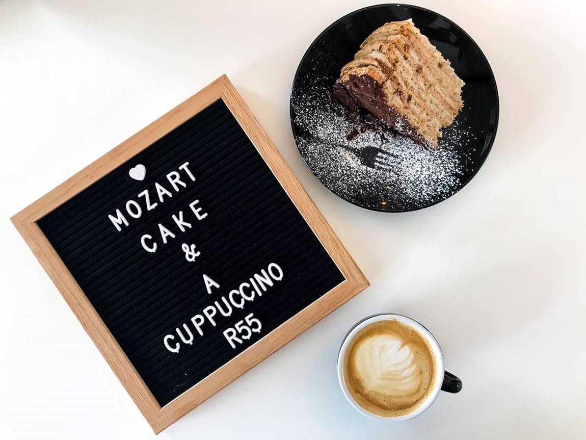 Grab a slice of the delicious Mozart Cake and a Cappuccino for R55