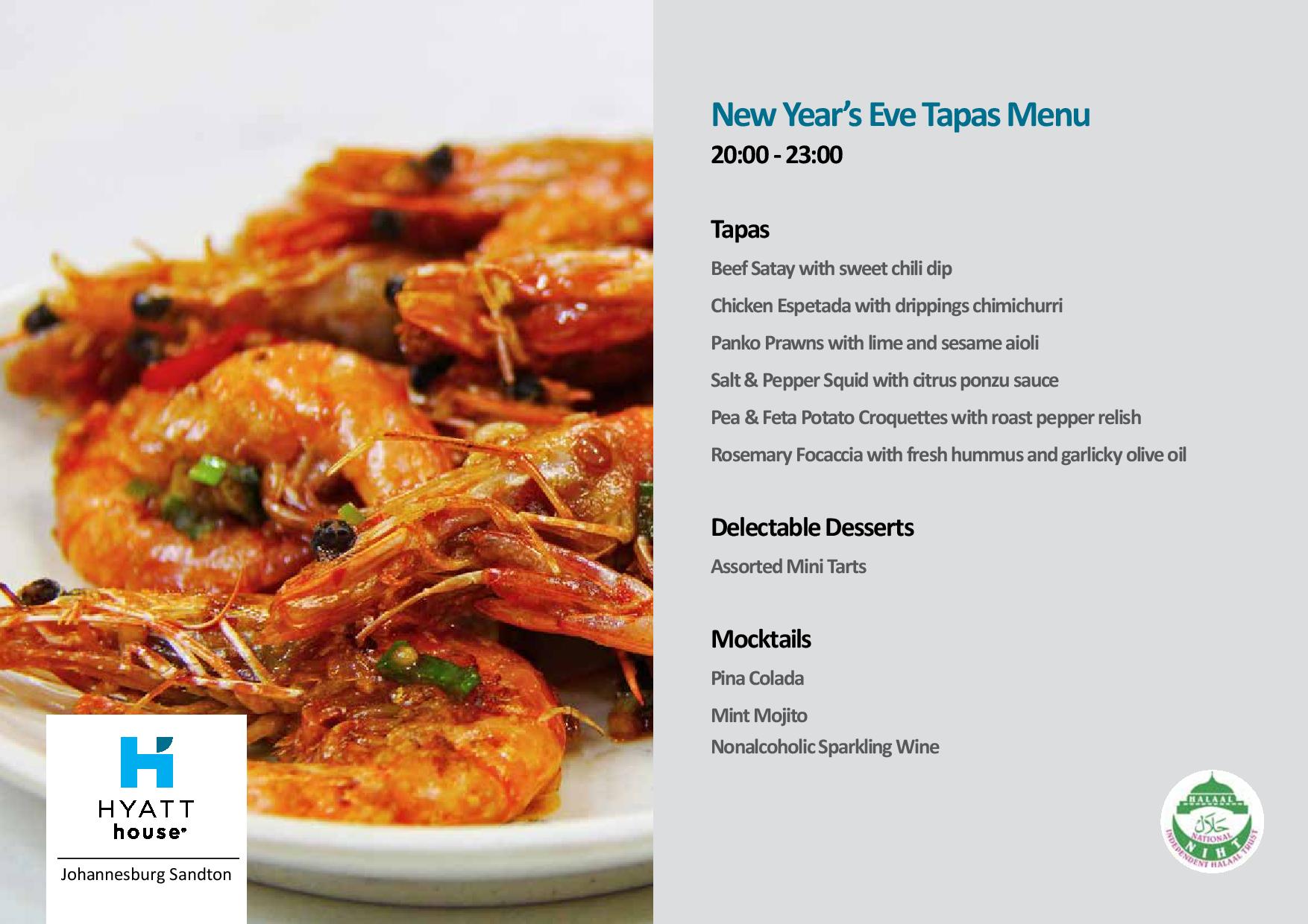 Enjoy a NYE tapas menu on New Year’s Eve available for R390pp.