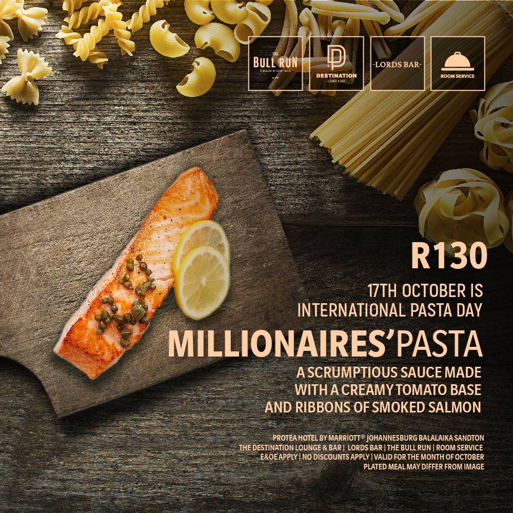 This October 17th, Protea Hotel Balalaika Sandton invites you to elevate your dining experience with their exclusive Millionaire’s Pasta Special.