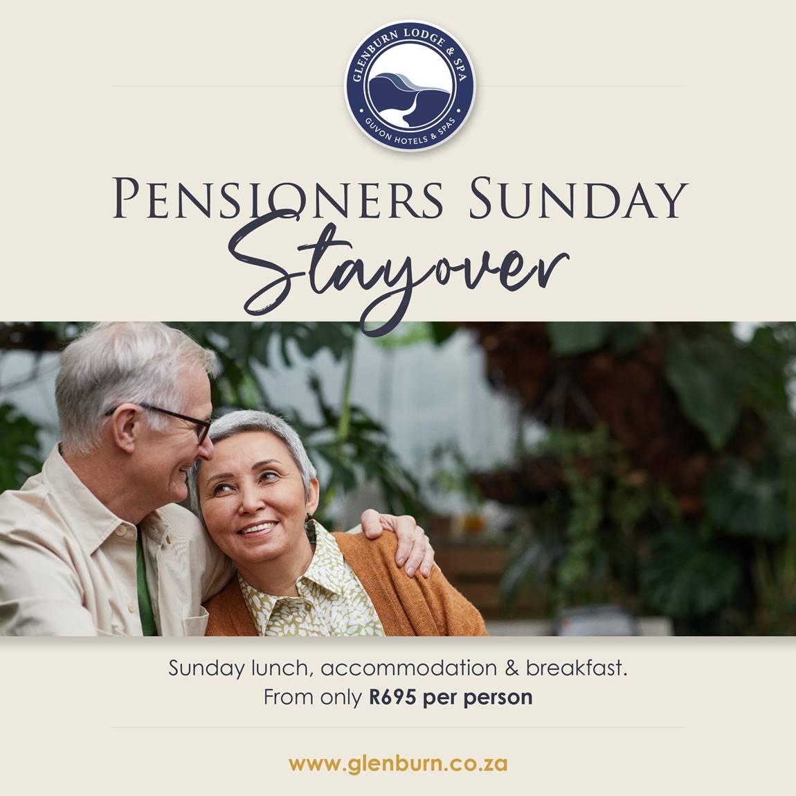 The Pensioners Sunday Stayover Package is available at an affordable rate, with prices starting at R695 per person sharing per night for a standard hotel room, and R975 per person sharing per night for a garden suite. This package is the perfect way to enjoy a relaxing Sunday at Glenburn Lodge & Spa, and is sure to be a memorable experience.