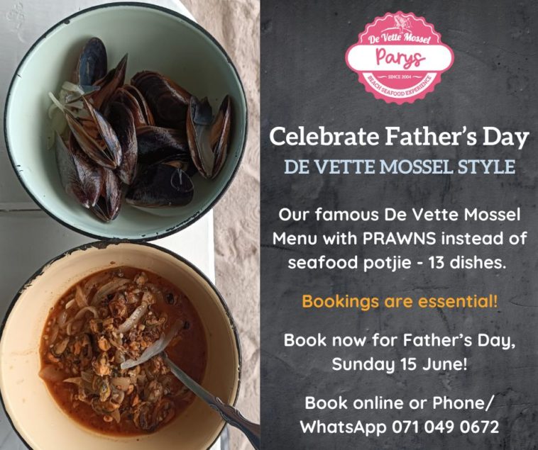 This Father’s Day, Sunday 15 June, ditch the boring lunch plans and treat Dad to a seafood feast that’s laid-back, lekker, and full of flavour at De Vette Mossel Parys.