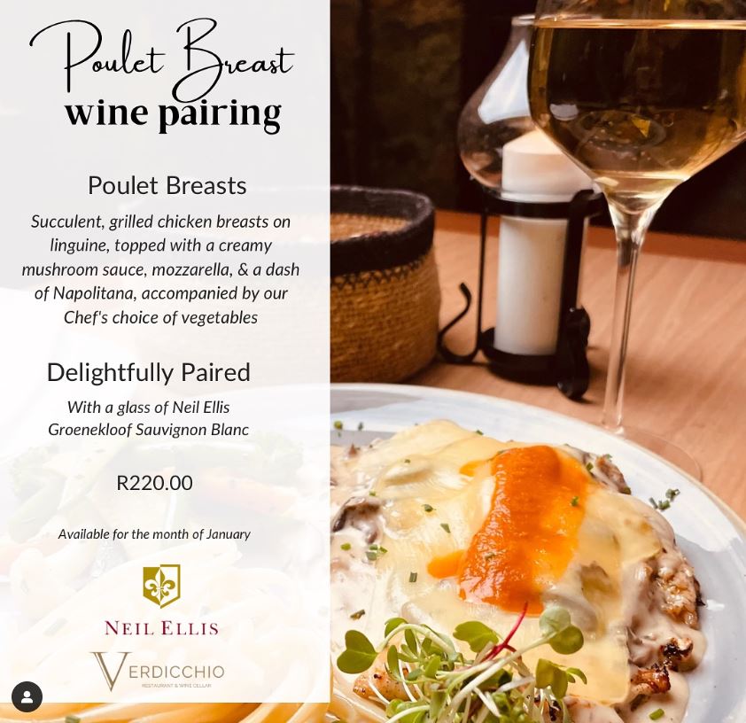 Verdicchio Restaurant’s exclusive pairing of Poulet Breasts and Neil Ellis Groenekloof Sauvignon Blanc.