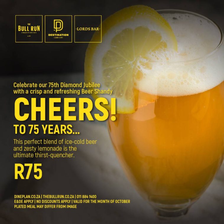 Head over to The Bull Run, Destination Bar, or Lords Bar to enjoy a crisp and refreshing Beer Shandy, available for just R75.