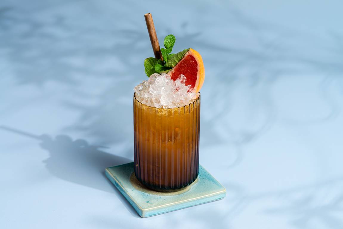 - Mint Sprig, Grapefruit Wedge, and grated Tonka Bean to garnish