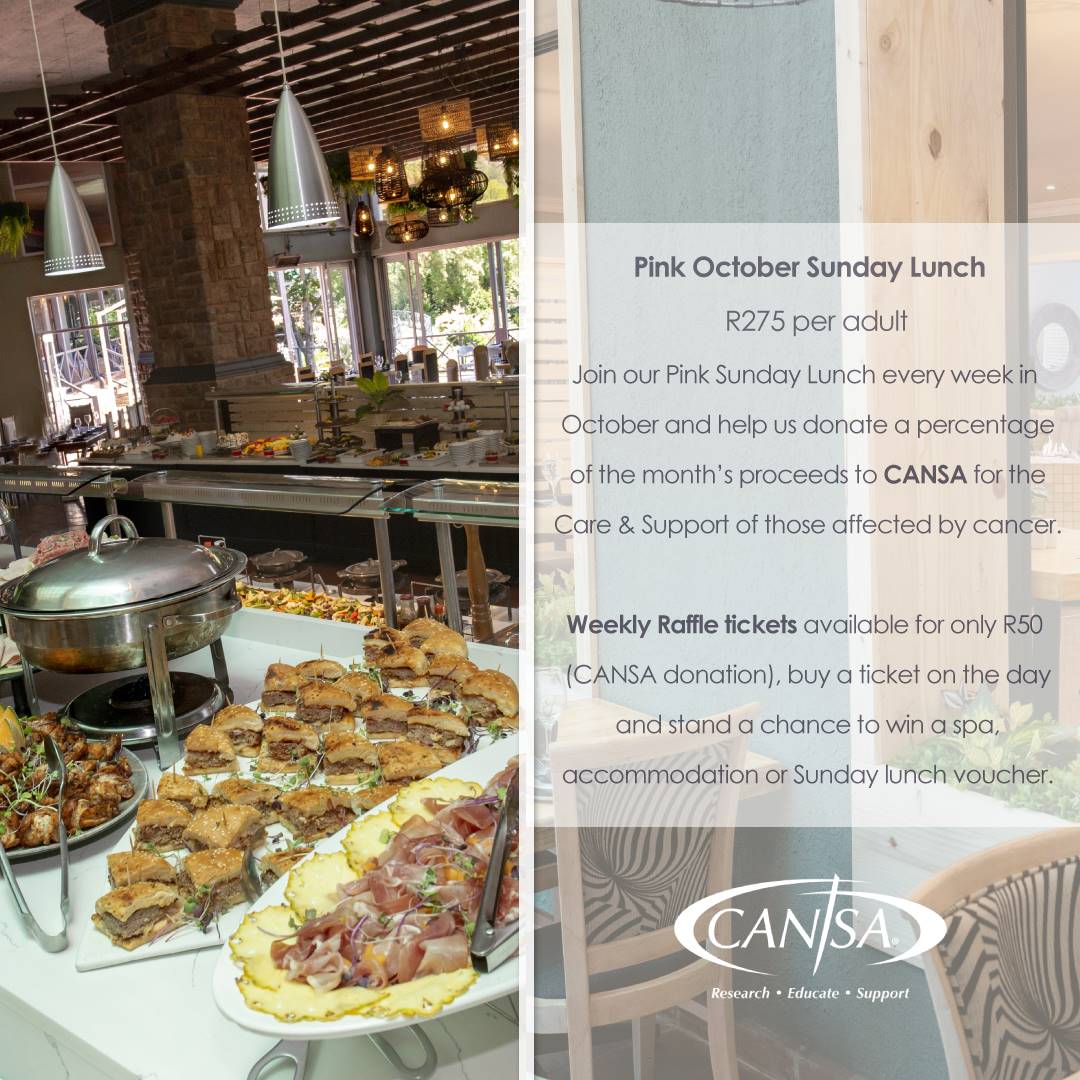 Every Sunday, join them for a heartwarming lunch, knowing that part of the proceeds will be donated to CANSA, aiding the care and support of those affected by cancer.