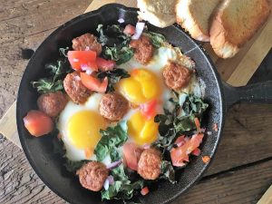 The Federal – Brunch – Huevos A La Flamenca – three organic eggs baked and served in a pan with seared spinach, chorizo & fresh tomato (1)