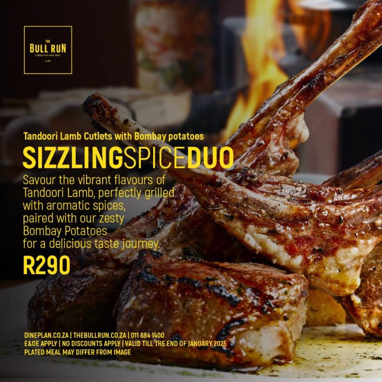 The Bull Run in Sandton invites you to indulge in a flavour-packed culinary experience with their Tandoori Lamb Cutlets and Bombay Potatoes.