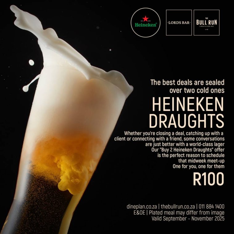 The Bull Run and Lords Bar are giving Joburg every reason to make that midweek meet-up happen with their unbeatable Heineken Draughts special.