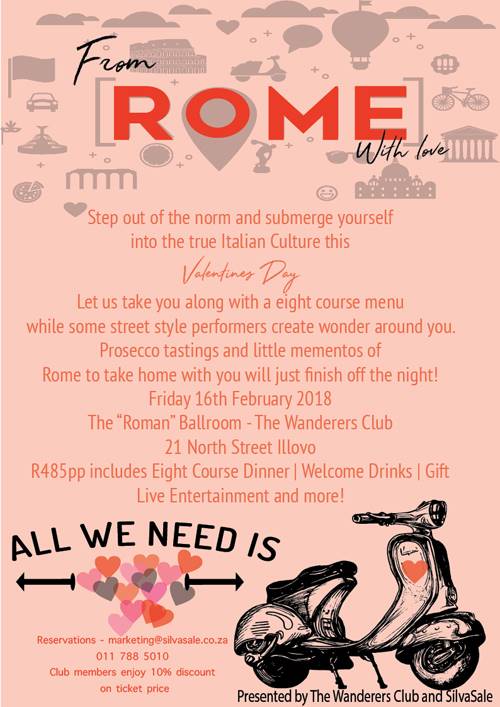 Join an 8 course dinner at SilvaSale Wanderers Club this Valentine’s Day!