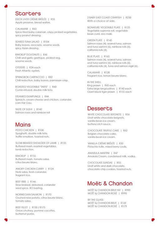 Central One Restaurant is offering a four course set menu set in a romantic atmosphere with wonderful dishes available to choose from. For R900 per couple you can join this occasion that is bound to be memorable for everyone involved.