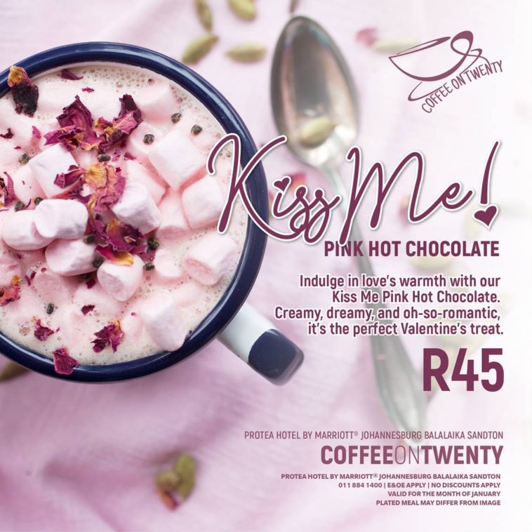 Embrace the warmth of love this Valentine’s season with Coffee on Twenty’s Pink Hot Chocolate Special priced at R45.