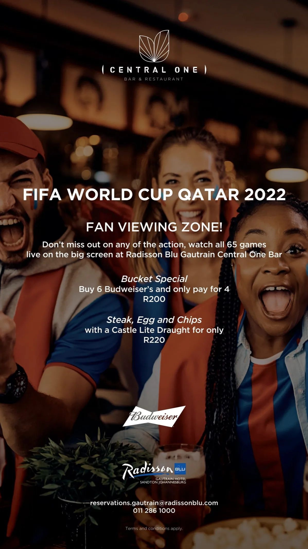 Don’t miss out on the action and watch all 65 games at Radisson Blu Gautrain Central One Bar!
