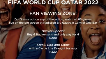 Don’t miss out on the action and watch all 65 games at Radisson Blu O.R Tambo Pool Deck and the Mural Bar.