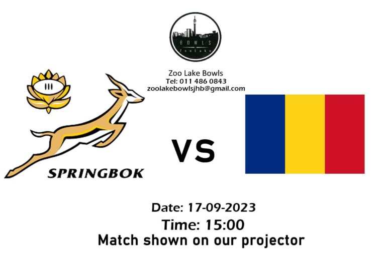 Rugby fever is set to sweep through Zoolake Bowls on September 17, 2023, at 15:00 as fans gather to witness the Springboks in action against Romania at the Rugby World Cup.