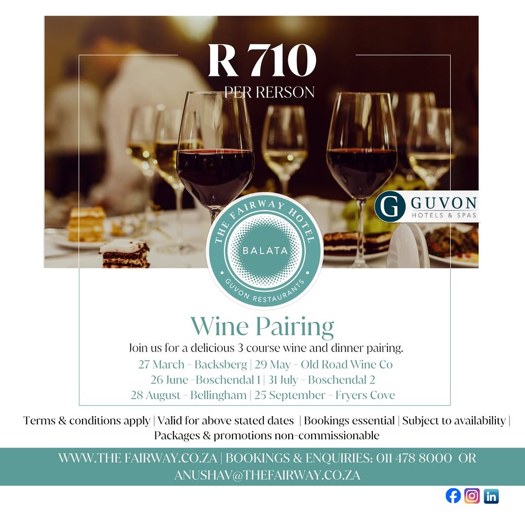 How to enter? It’s easy! 🍷 Like the competition post and tag a friend (because wine is better with company!) 🍷 Email your reservation to anushav@thefairway.co.za 🍷 Use the subject line: “Backsberg Wine Dinner Food Pairing Competition” 🍷 Book a reservation for two people