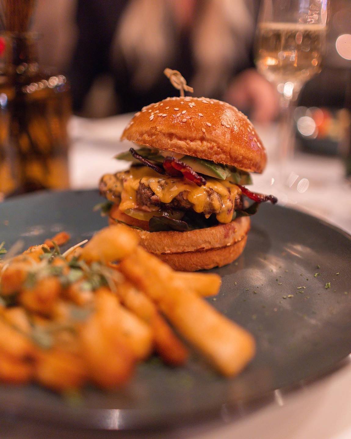 - For those craving classic flavors with a twist, the Bacon Burger offers a homemade beef patty topped with cheese, tomato, lettuce, fried egg, and red wine caramelized onions, served alongside crispy fries.