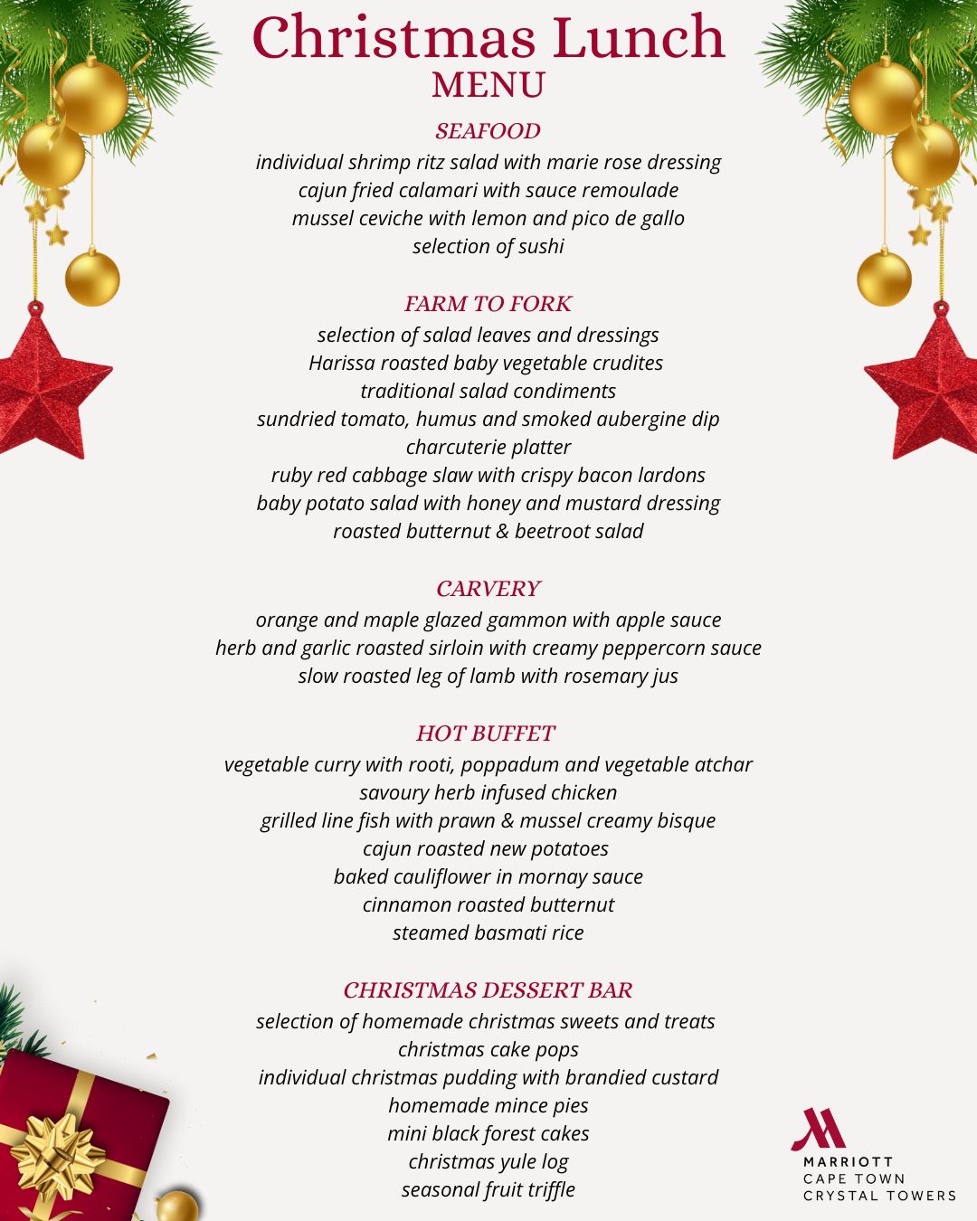 The Cape Town Marriott Hotel Crystal Towers is pulling out all the festive stops with a Christmas Lunch menu that reads like a love letter to foodies everywhere.