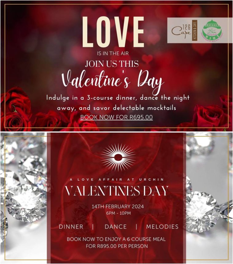 - The captivating Valentine’s Day offerings include a romantic 3-course dinner dance evening at 126 Cape Kitchen & Cafe, priced at R695.00 per person. Indulge in exquisite cuisine and then dance the night away with your beloved amidst the alluring ambiance