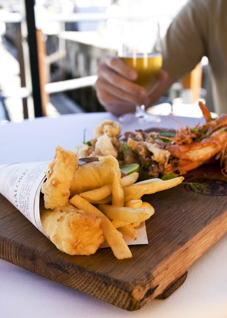 - Fish & Chips & Glass of Graham Beck white or red wine-R115.00