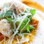 Vegetarian option – Indian spiced potato, spinach, cauliflower, onion bhaji, tomato chutney