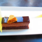 Dark chocolate pavé Honeycomb, chocolate brandy snap, orange puree