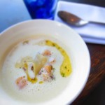 Leek and potato soup Fontina tortellini, brioche croutons and béarnaise relish