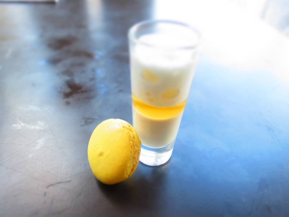 Coffee pannacotta Hazelnut foam, amaretto jelly, salted caramel macaron